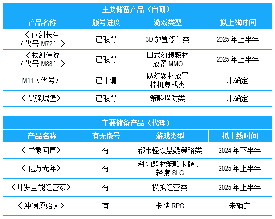 公司储备多款新品,,,期待为玩家解锁更多新鲜体验,,,,部分产品如下表所示::